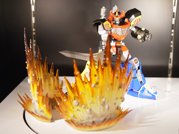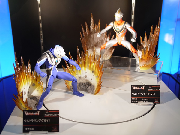 奥の「ウルトラマンガイア(V2)」と一緒に展示されている光臨エフェクトは、ガイア発売当時の初回特典。