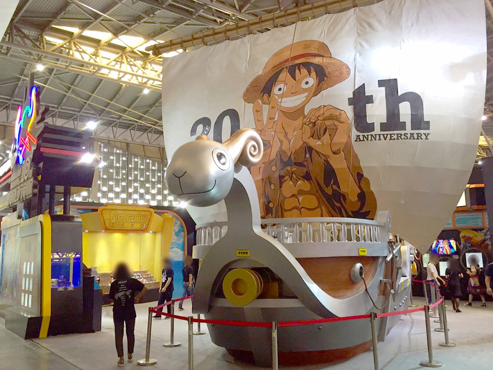 Celebrating 20 years of ONE PIECE, TAMASHII NATIONS figures from the series took center stage in a special booth. The first thing visitors encountered upon entering the booth was a huge replica of the Going Merry! The giant model was created especially for this event. It was based on the metallic-colored “Chogokin Going Merry ONE PIECE 20th Anniversary Premium Color Version” going on sale in October. The main sail features a 20th commemorative illustration of Luffy.