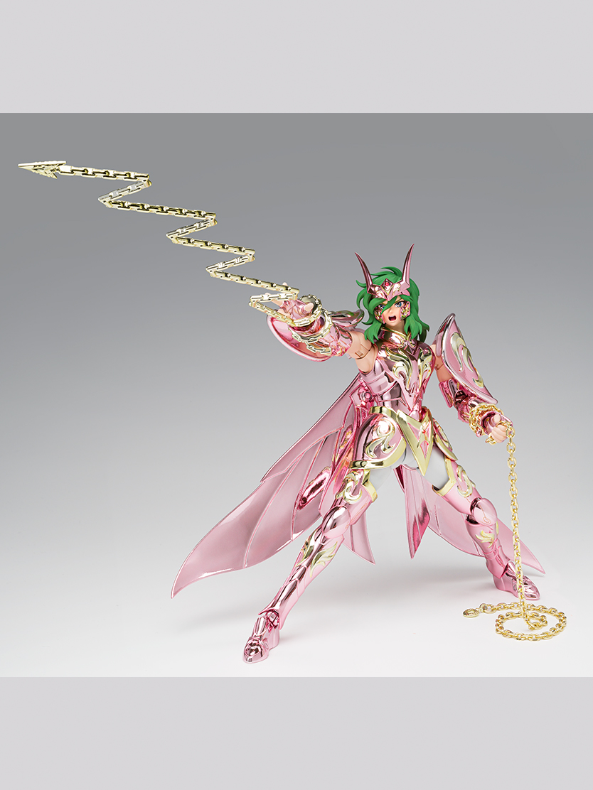 2009年発売の「聖闘士聖衣神話 アンドロメダ瞬(神聖衣)」が16年の時を経て、聖闘士聖衣神話EXに登場!劇中作画を参考に大幅に見直された造形に加え、プレイバリューの幅を広げる豊富なオプションパーツが付属!