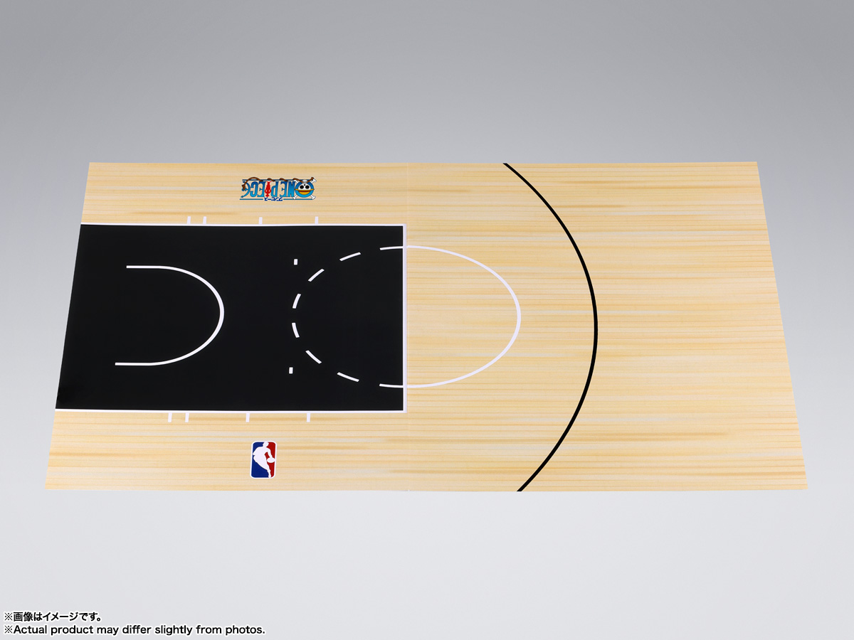 「ONE PIECE×NBA」より「バスケットゴールセット」が登場!バスケットゴール本体と付属のコートデザイン台紙を組み合わせることで、本格的なNBAコートさながらのシーンを再現できる。