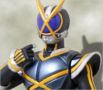 仮面ライダーファイズのライバルキャラとして人気が高い「仮面ライダーカイザ」を商品化。アルティメットファインダーはクリアパーツ、カイザブレイガンブレードソードは別パーツで再現しています。