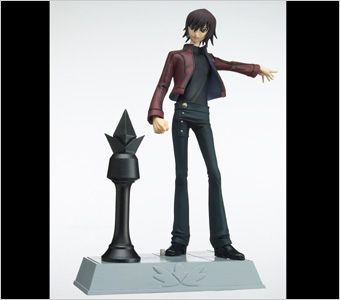 ルルーシュは私服姿を再現。服の脱着が可能となっており、ギアス発動時のポーズ取らせることが出来ます。プロップとして、劇中で印象的なキングの駒と、ルルーシュのブリタニア市民IDカードが付属します。