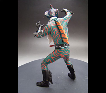 <ソフビ魂シリーズ>に7人ライダー集結!異形の戦士 アマゾンライダーここに登場!!ヘルメットはクリアパーツで目の中の複眼まで再現。ギギの腕輪、コンドラー、マフラーは別パーツ化することで精密な造形を実現した。ディスプレイに便利な特製補助スタンドが付属。
