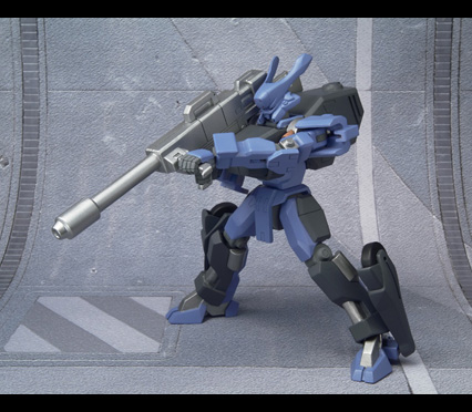第五世代ナイトメアフレーム「サザーランド」。マスプロモデルらしい無骨なメカニック感、多種のオプション武装が魅力です。大型キャノンは一般機のみの付属パーツになっております。
