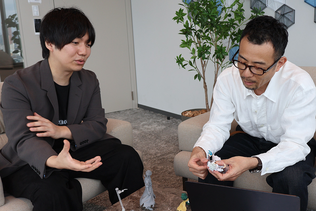 長汐:製作にあたってのデジタル化は進んでいますが、やはり最初はアナログで作り出すようにはしていて、生々しさみたいなものが今回の荼毘の造形には映えるなという気がします。
